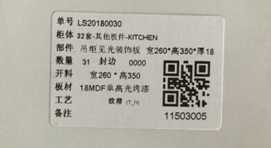 Each panel has it's own QR code. By scan the code, our worker can know the “identity” of this panel. The dimension of it and the order even cabinet it belongs to will show clearly. By this way, we can make sure zero mistake in production.
