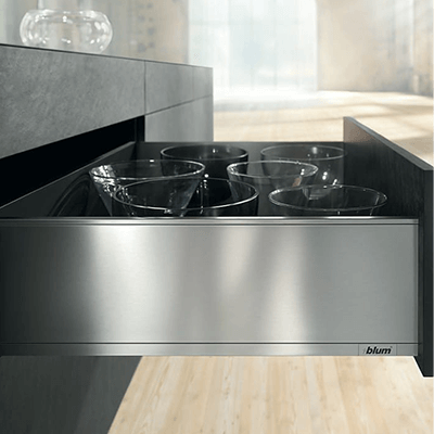 We only use the drawer system that has slim design, fluid running action and high load capacity.