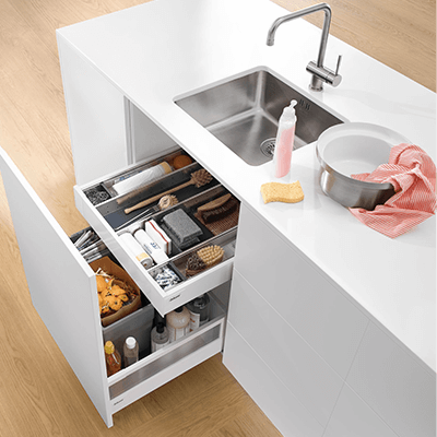 We offer a wide variety of inner dividers and kitchen accessories for kitchen storage solution. The storage system is very flexible and practical, which makes your kitchen nice and tidy.