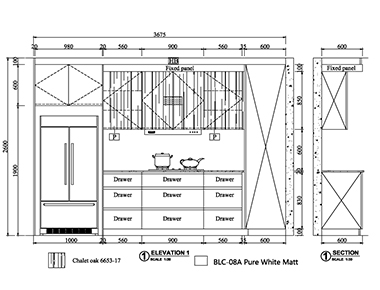Clients can provide us with project floor plans and their preferences for cabinet style and materials.