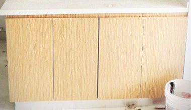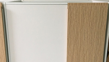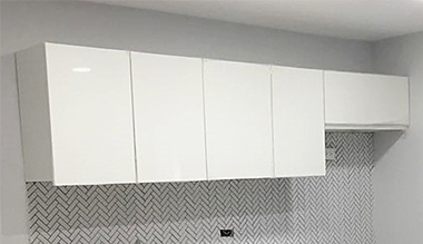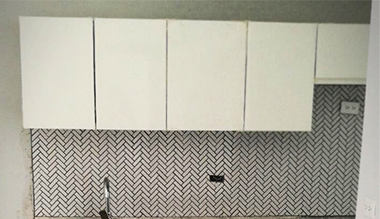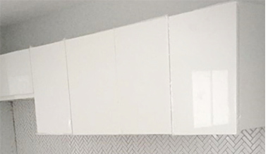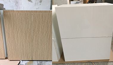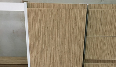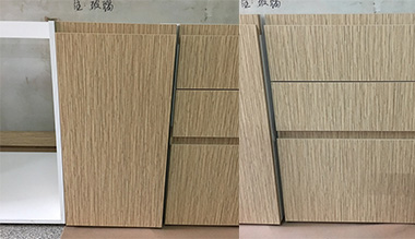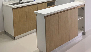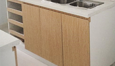 This project is a apartment project. The kitchen is melamine finished, flat door panel with 45 degree cut for handle design.