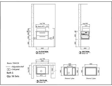 Clients can provide us with project floor plans and their preferences for cabinet style and materials.