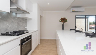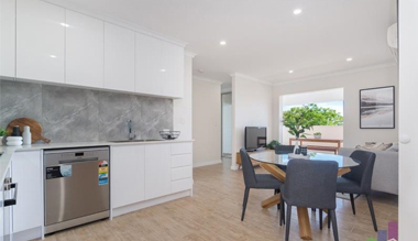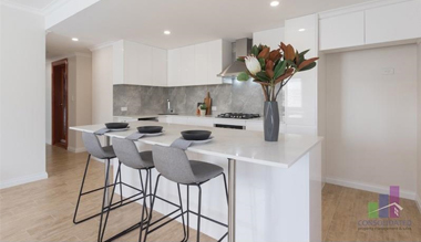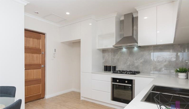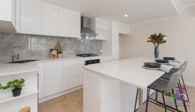 The door style of this project is modern choice in Australia. The high gloss white lacquer door without handles makes the kitchen stands out from regular kitchen designs.