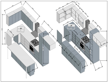 Clients can provide us with project floor plans and their preferences for cabinet style and materials.