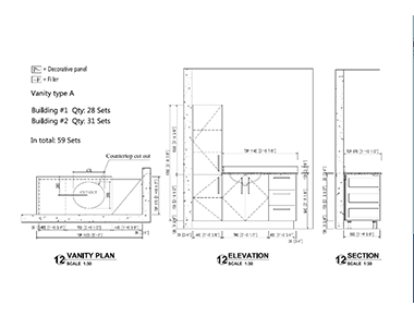 Clients can provide us with project floor plans and their preferences for cabinet style and materials.