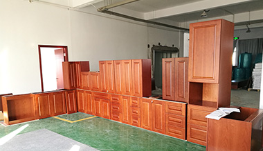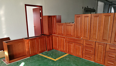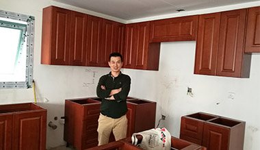 This project is a villa project, the kitchen design is solid wood finish with raised door panel design.