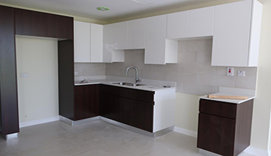 The kitchen design of this project is high gloss lacquer finish mix with light walnut melamine. The vibe is simple yet unique.
