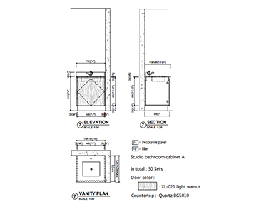 Clients can provide us with project floor plans and their preferences for cabinet style and materials.