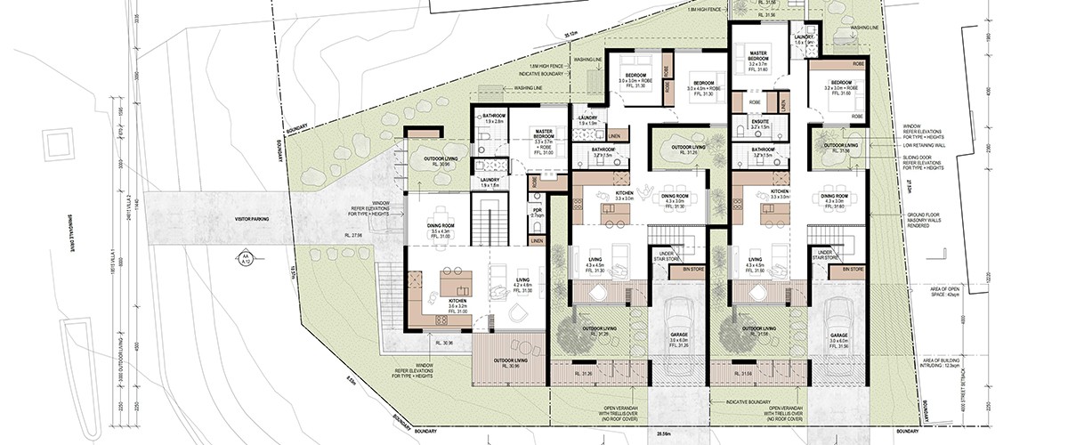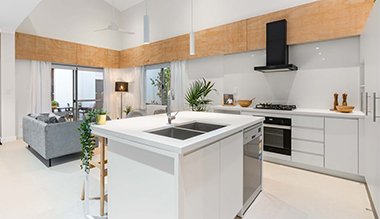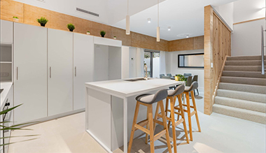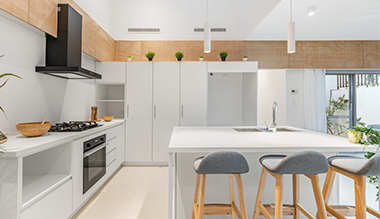 This project is a three - town house project in Perth Australia. The kitchen and vanity cabinets are high gloss pressure laminated.