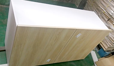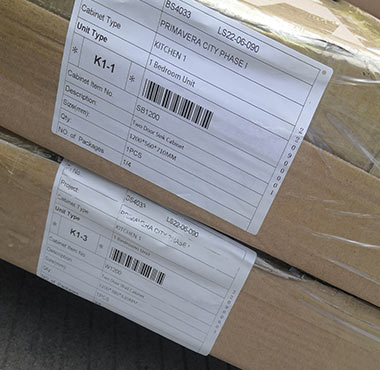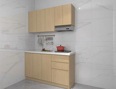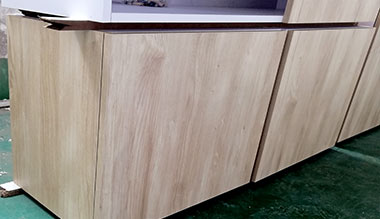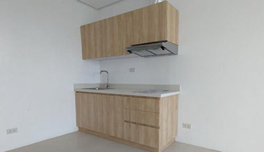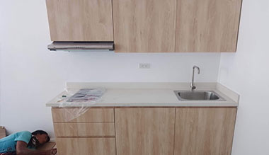 This is a apartment project in Philippines. The 46 sets Kitchens are wood grain melamine with 45 degree handless.