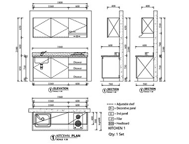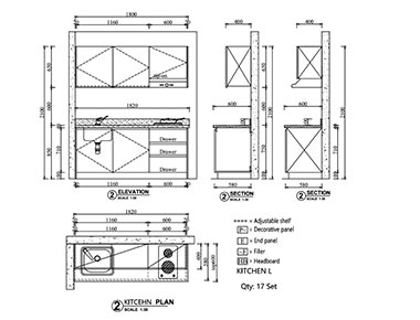 Clients can provide us with project floor plans and their preferences for cabinet style and materials.